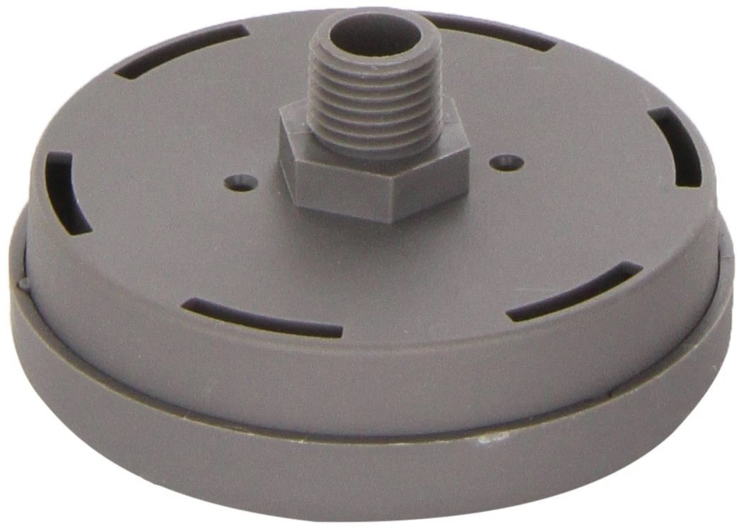 Plastic direct inlet air filter housing with 1/4 inch M NPT connection.