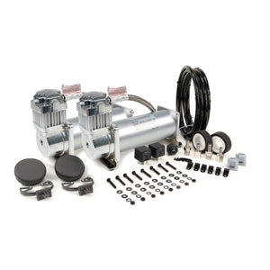 VIAIR's Dual Performance Value Packs are the perfect choice when you need a heavy duty air compressor system to power your air suspension kit, industrial application, air horns and most off-road pneumatic needs. Each of VIAIR's Dual Performance Value Packs includes two of our most popular heavy duty air compressors and all of the necessary compressor installation hardware to make these dual air compressor kits an ideal solution for a wide variety of applications. Each of our Dual Performance Value Packs is rated to fill tanks up to 10 gallons.