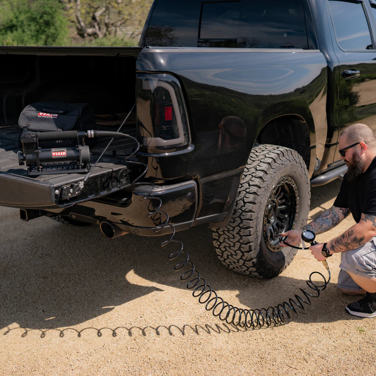 VIAIR’s 450P Automatic Portable Compressor makes filling your car, truck, SUV, or off-road vehicle quick and easy. With 1 hour of runtime and automatic shutoff, move from tire to tyre and check pressure mid-fill without having to flip a switch. High pressure and 100% duty cycle mean you can service multiple commercial vehicles including tractor-trailers and 18-wheelers with ease.
